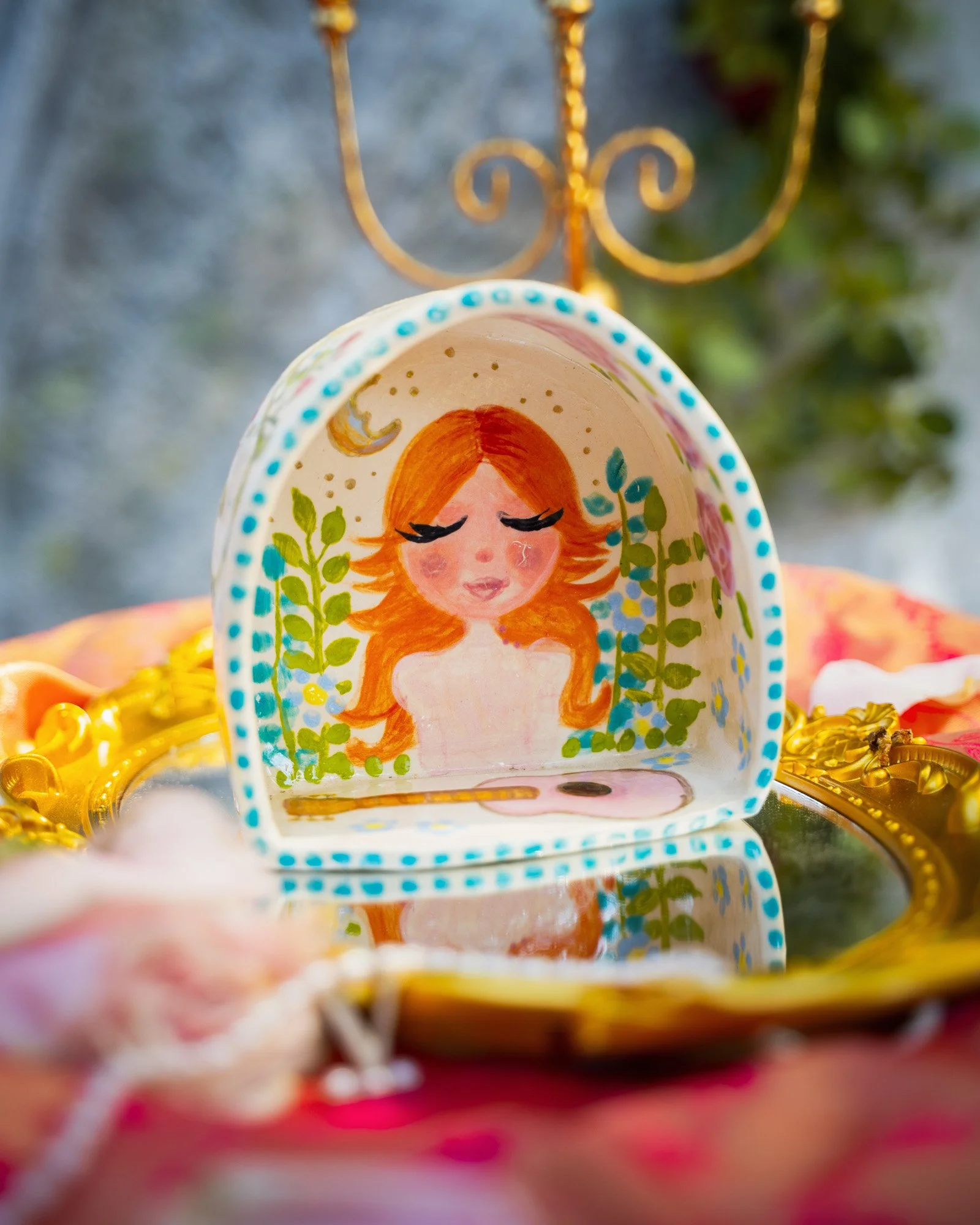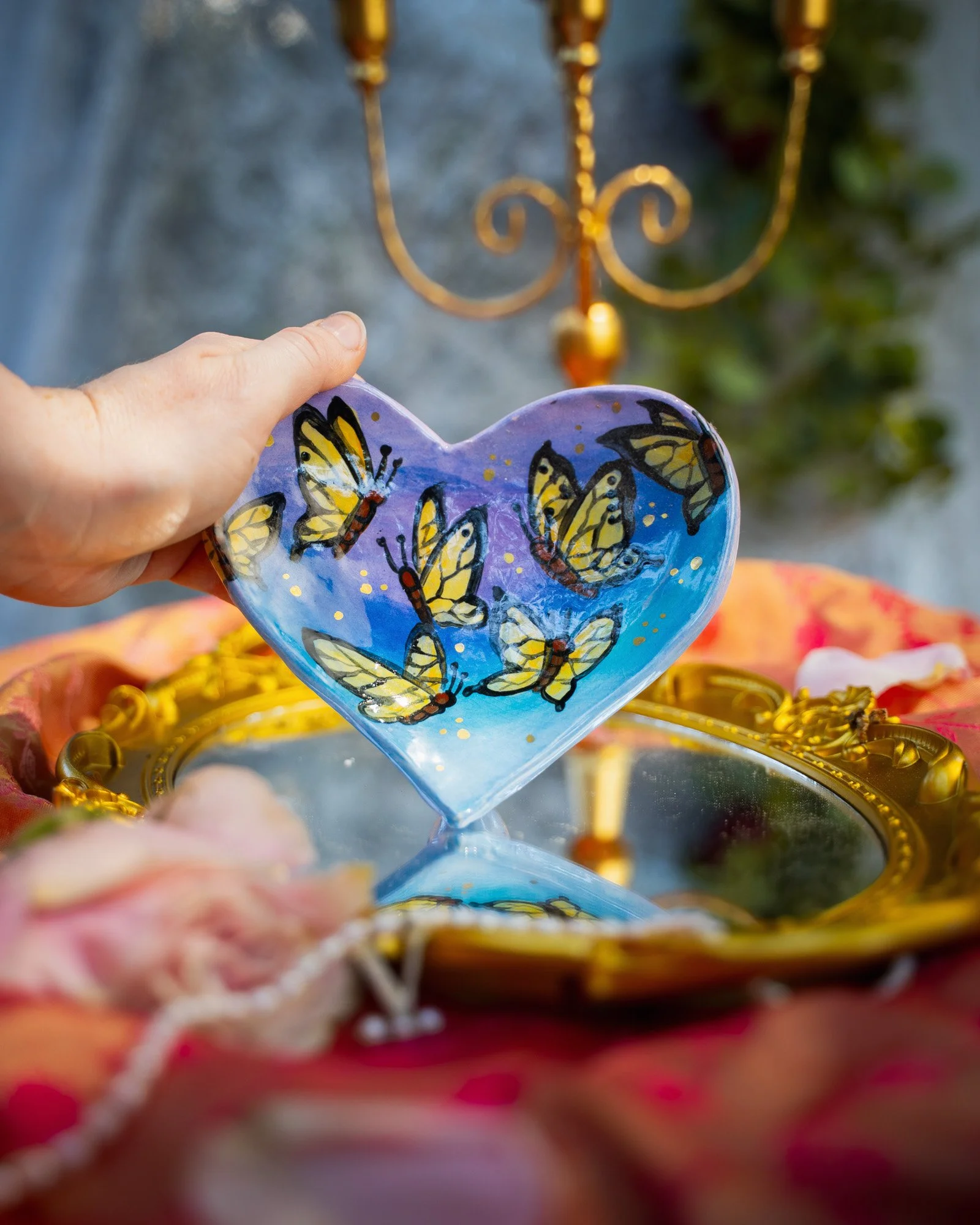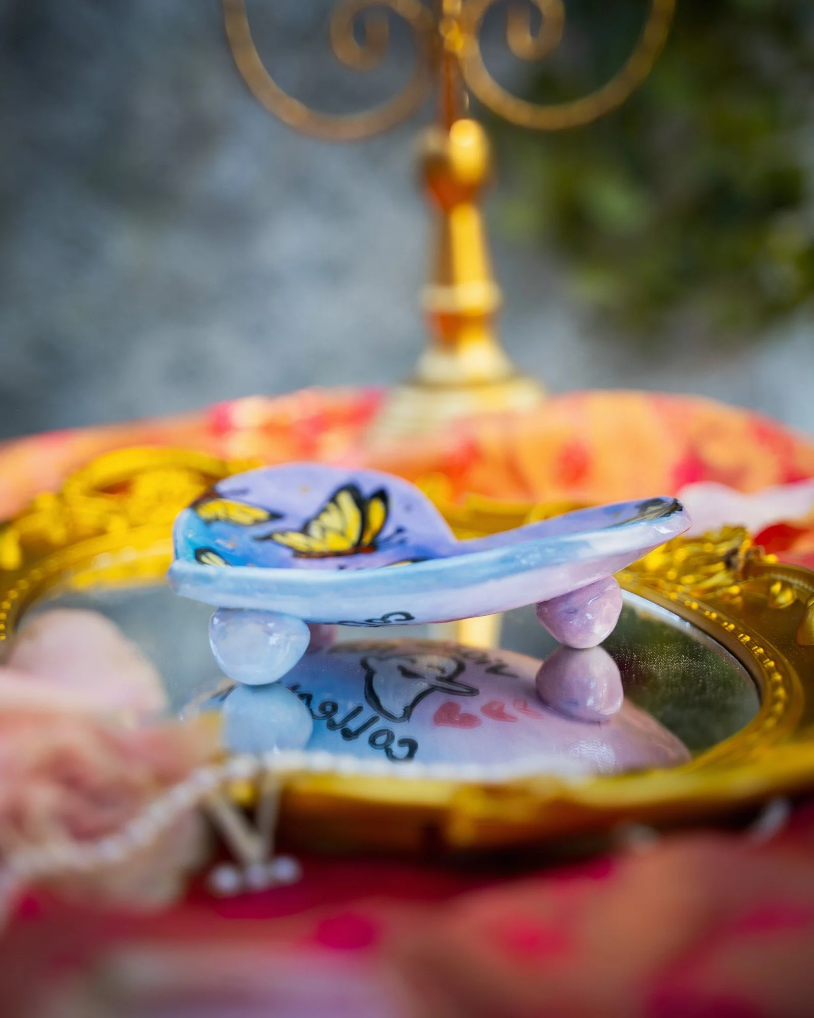 Each piece in this collection is lovingly hand-built and uniquely crafted by Oddartbydonna- there is only one of each, making every item truly one-of-a-kind. Inspired by the symbols and themes from my debut album Charting the Stars in Her Eyes, these creations carry the magic and stories behind the music into your everyday life. Whether it’s the delicate butterflies, watchful crows, or shimmering stars, each piece invites you to hold a little part of this journey with you.